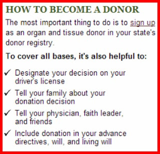 I cannot emphasize enough how important it is for each and every individual without some sort of pre-existing condition to be a registered organ donor! Not only that, but to keep an open heart and be willing to donate a loved one's tissue and organs if ever presented with that choice.